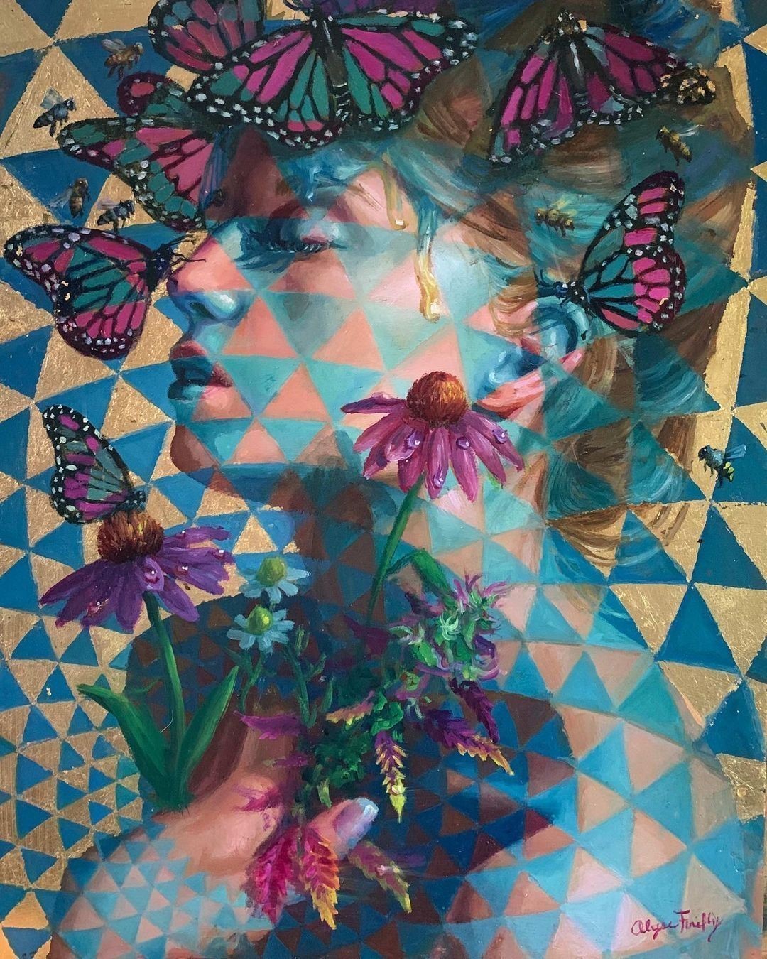 How magical! @alysefireflyart’s work focuses on the delicate beauty of the relationship between growth and decay, viewing death symbolically as an awe inspiring process of rebirth. It is also important to her to shine a light one humankind’s oneness with the universe. Each brushstroke carefully grasps at the ethereal nature of light finding its relationship with the shadow, finding the balance of warm and cool colors, and relating soft and hard edges. With each mark a bridge is formed and articulated in pigment, connecting this inner world of thought and emotion to the outer world, and invites the viewer inside. She entered “Alchemy” into the High Art 2020 contest by @natural.cannabis.company …