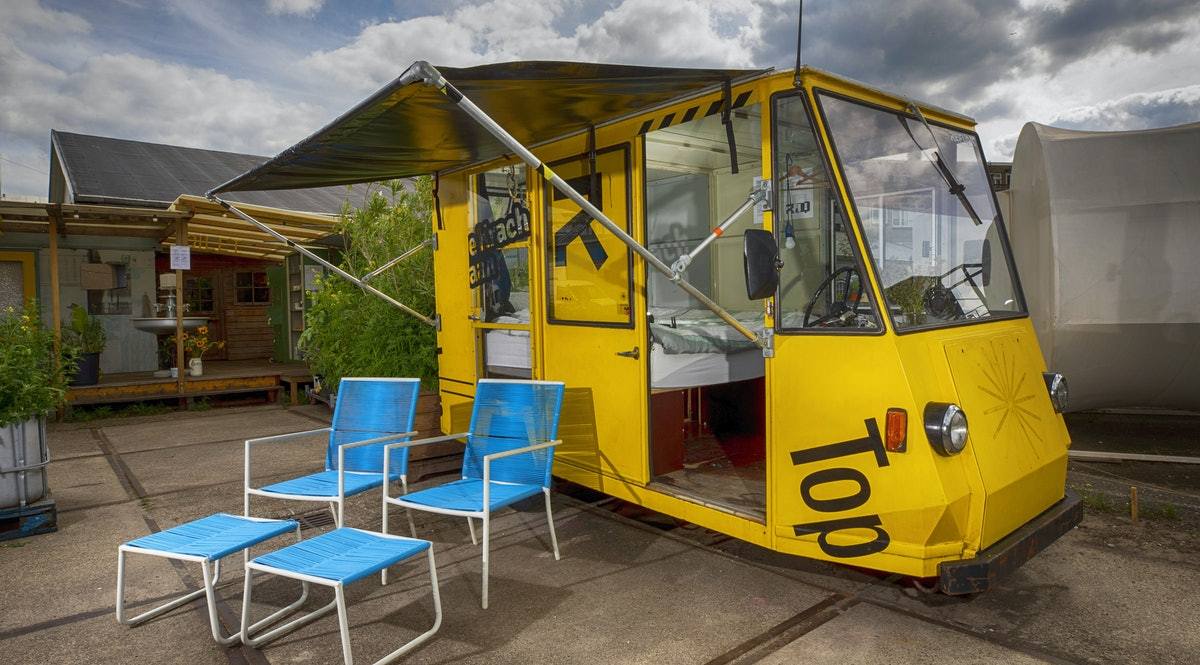 The nine objects in which one sleeps are each sustainable in their own way and in most cases made from residual materials. In addition, the sanitary facilities are located in a former site shack.
