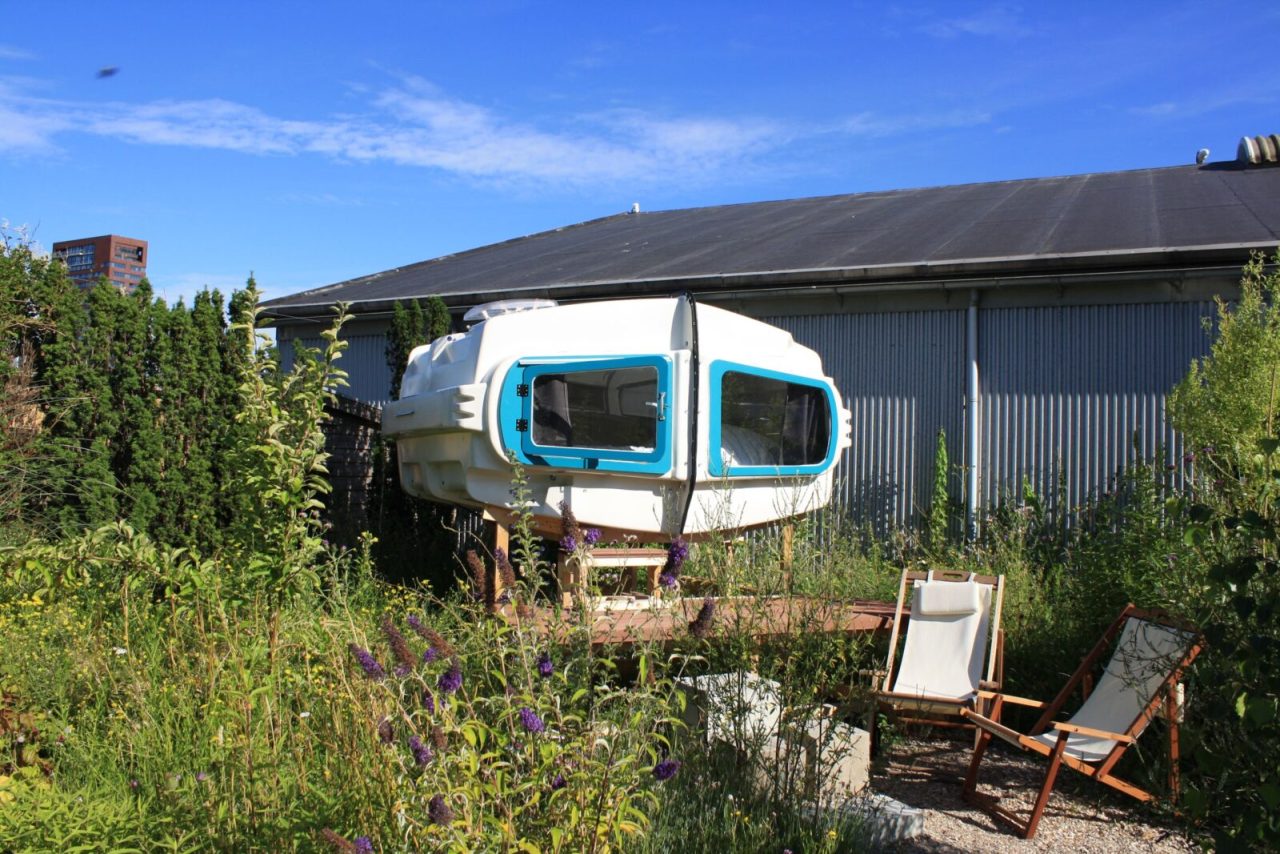 Holiday in your own country at unique city camping site in Rotterdam. Sleeping in architectural, sustainable objects rather than tents and caravans, the campsite offers a unique experience.