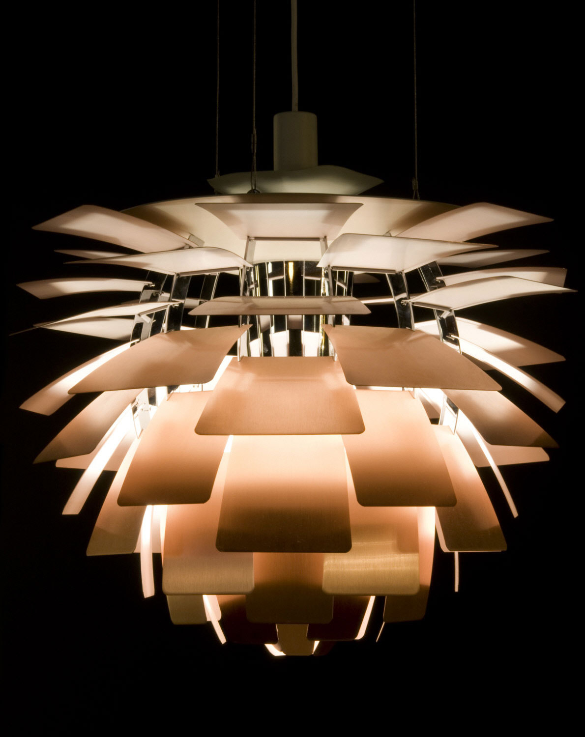 Danish architect Poul Henningsen became known for his innovative designs for light fixtures, which used thoughtful geometric arrangements of baffles and shades to modulate and diffuse the harsh light of a bulb.
