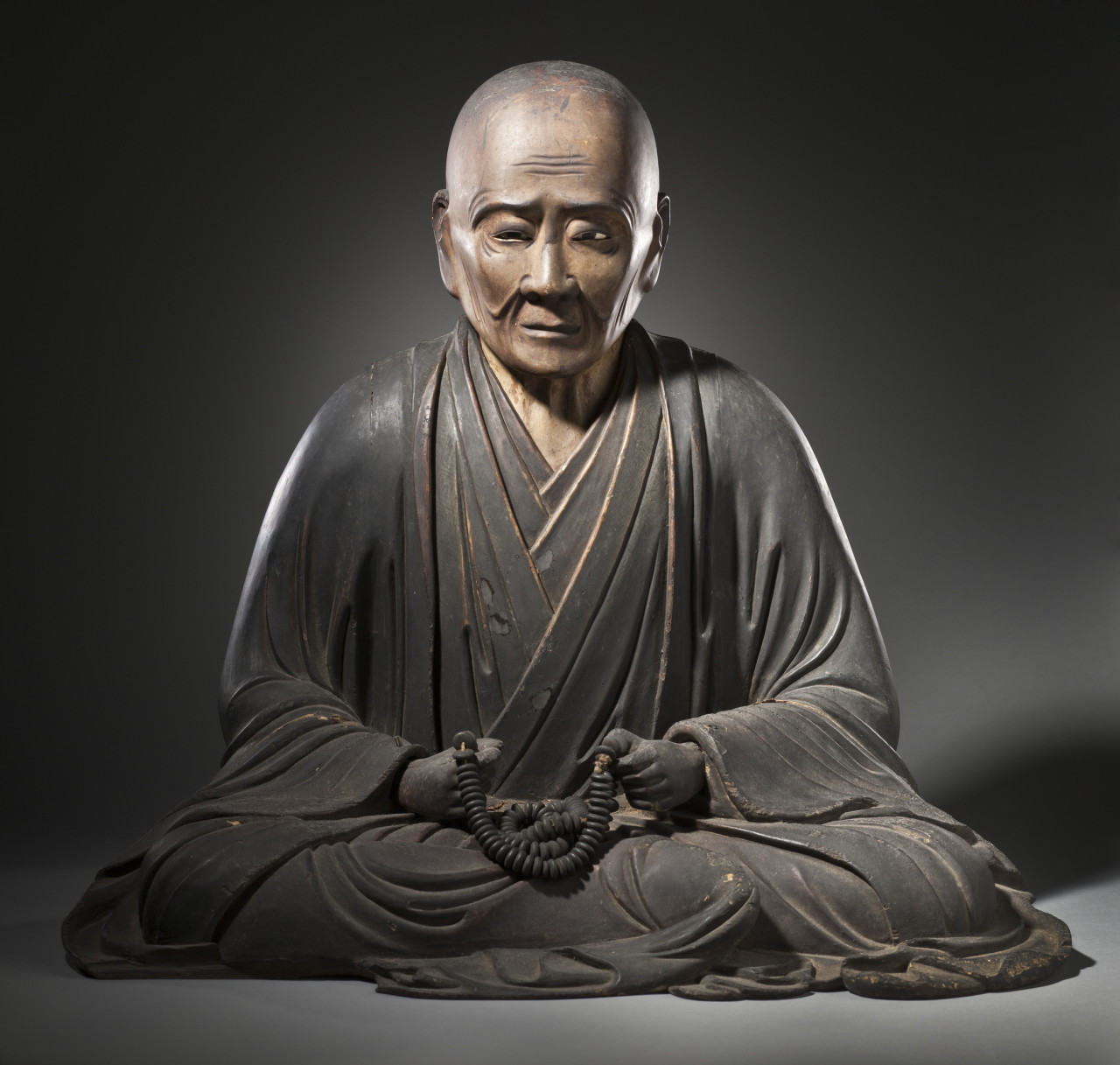 Buddhist Layman. Japan, Momoyama period (1573-1615). Wood, pigment, and crystal 53 x 58 x 35 cm [2100 x 1997][OS]
