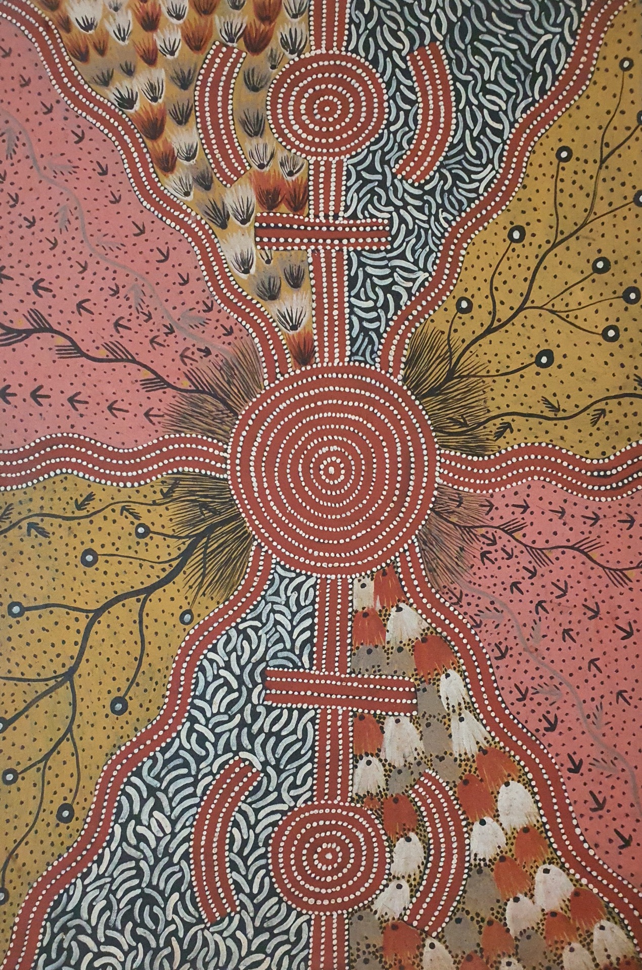 Kaapa’s early art has a graphic clarity and symmetry of design. His ability to paint intimate details with the brush and to build an ordered sense of story appealed to European sensibilities.